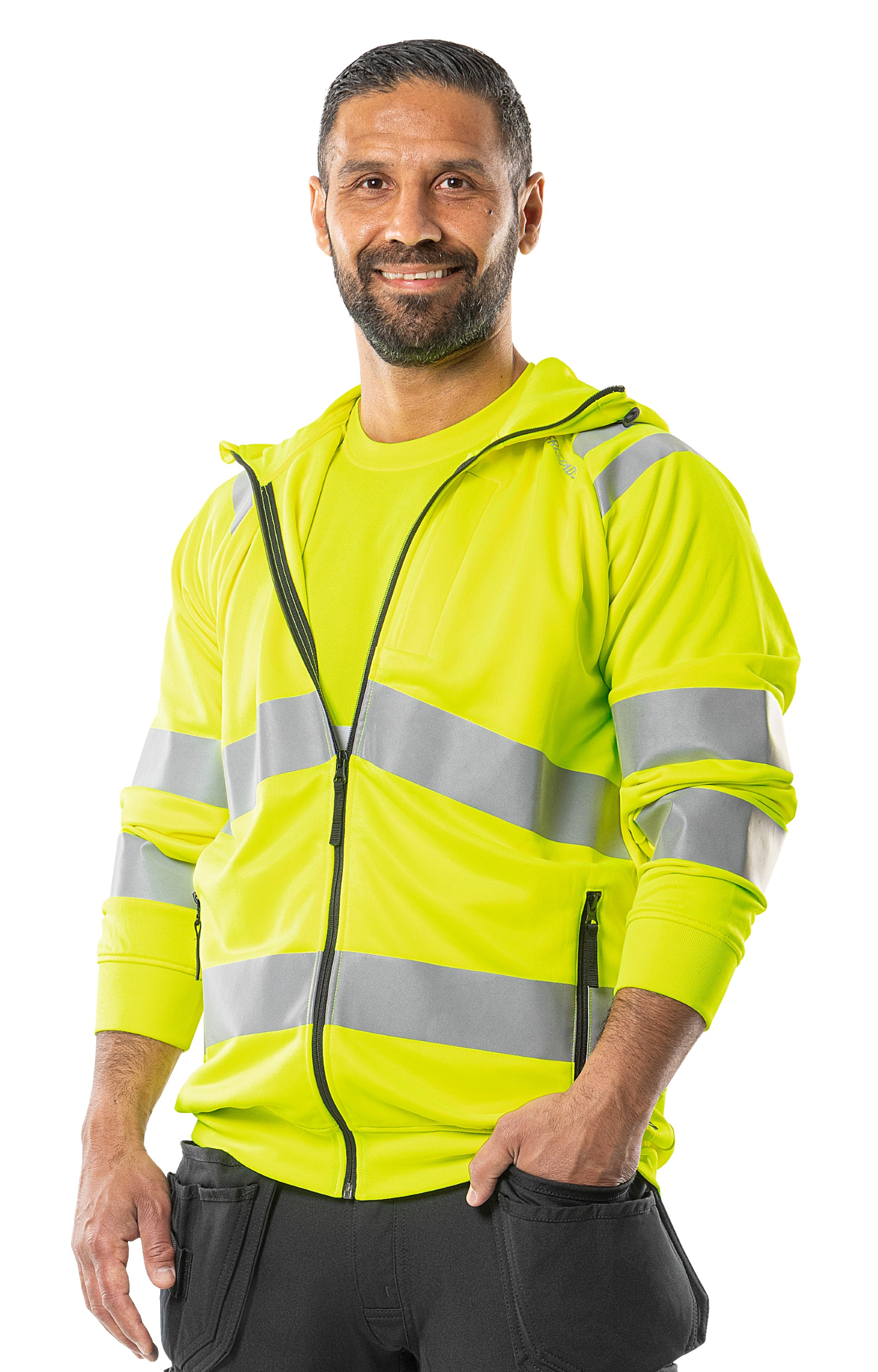 EN ISO 20471 class 3 és EN 13758-2 UPF 40+ UV védelem szerint jóváhagyva.